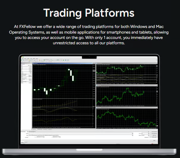 FXFellow advertises MetaTrader 4 (MT4) as its core platform, available for Windows, macOS, and mobile devices.