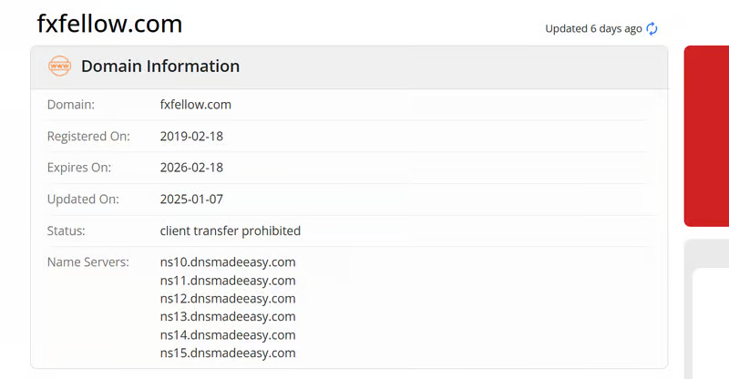 According to Whois records, the official domain fxfellow.com was registered on February 18, 2019, and most recently updated on January 7, 2025.