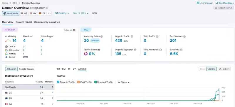 According to Semrush, bittap.com receives an average of only around 426 visits per month.