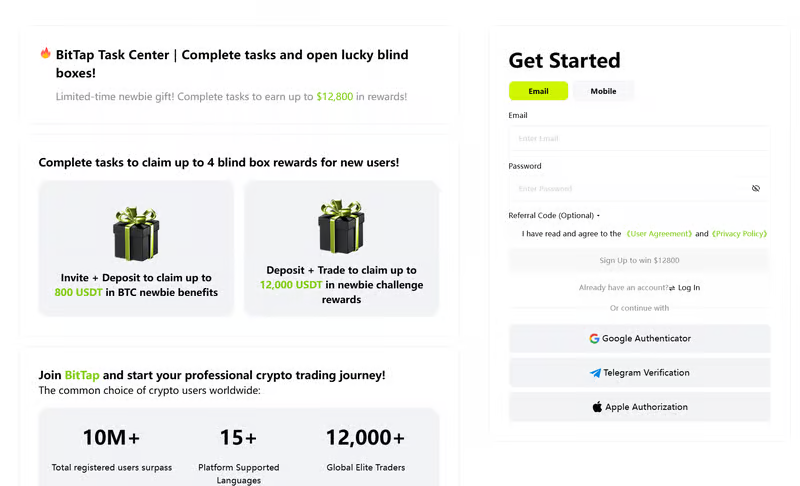 Opening an account with BitTap involves visiting the website or using an invite link, then clicking a clearly labeled Sign Up button to enter the registration page. The process is relatively straightforward and the key steps are clearly laid out.