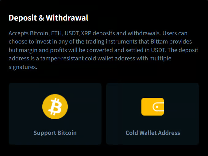 Although Bittam lists mainstream cryptocurrencies as tradable assets, it does not disclose core trading parameters such as fees, leverage limits, liquidation rules, or margin requirements. These omissions are not minor oversights; they directly affect a user’s ability to evaluate financial risk.
